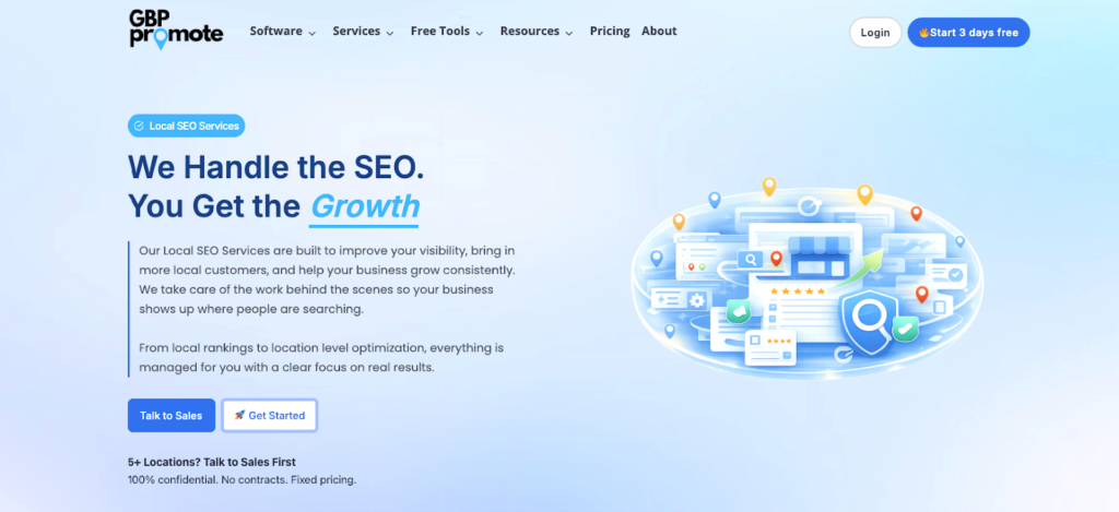 GBPPromote is an all-in-one GMB management software built specifically for businesses and agencies managing multiple Google Business Profiles. It combines GMB management services, local SEO services, review automation, and Google Maps visibility tracking into a single, easy-to-use dashboard.