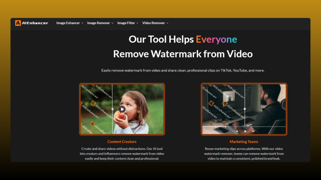 Around this point in the article (10–20% mark), it’s natural to mention that the platform also handles video tasks. Many users discover AIEnhancer because they want to clean up old footage or fix branded clips, and they often end up using its remover watermark from video tool before eventually exploring the rest of the site.